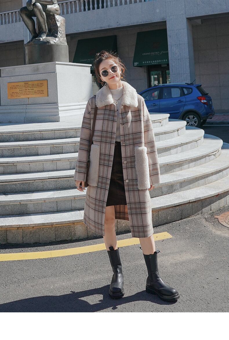 【送料無料】アウター コート レディース ミディアム丈 秋 冬 アプリコット チェック柄 襟付き ポケット 長袖 ボタン シングルブレスト S M L XL かわいい カジュアル キュート ガーリー ラブリー 大人可愛い こなれ感 おしゃれ 抜け感 お洒落 秋カラー 10代 20代 学生 休日 お出かけ デート 女子会 旅行 モテ コーデ スタイル インスタ映え 韓国系 ファッション 人気 あったか 暖かい 防寒 db1911