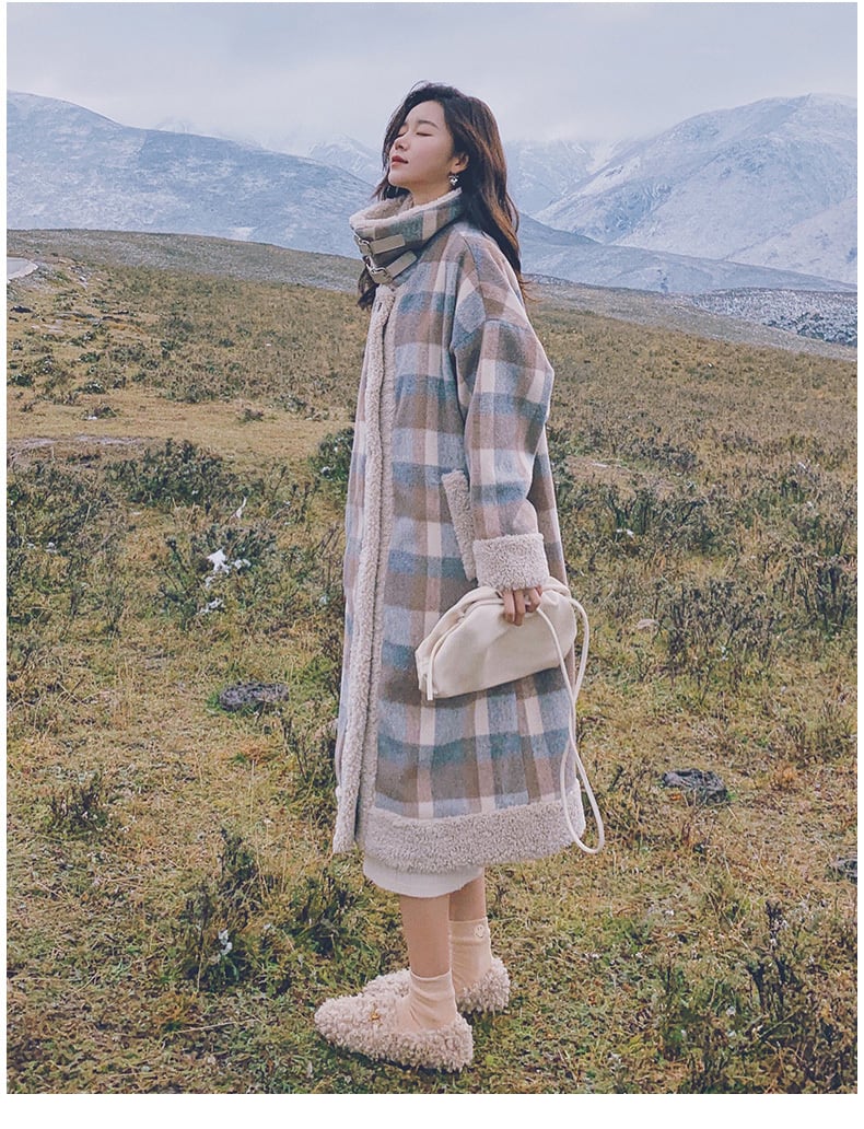【送料無料】ロング コート レディース アウター ボア ジャケット ミモレ 秋 冬 チェック柄 個性的 襟付き 長袖 ポケット ボタン シングルブレスト かわいい おしゃれ カジュアル レトロ 大人可愛い こなれ感 お洒落 大人女子 S M L XL マルチカラー くすみカラー 10代 20代 休日 お出かけ コーデ デート 女子会 旅行 インスタ映え スタイル モテ あったか 暖かい 防寒 人気 体型カバー 韓国系 ファッション db1914