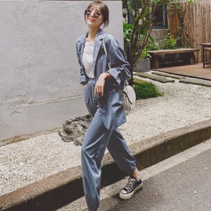 【送料無料】セットアップ ジャケット パンツ レディース 春 秋 グレーパープル 長袖 襟付き ボタン シングルブレスト ポケット ウエストゴム ドローストリング S M L カジュアル レトロ おしゃれ 大人可愛い 大人女子 シンプル 大人カジュアル お洒落 こなれ感 抜け感 10代 20代 30代 休日 お出かけ デート 女子会 旅行 インスタ映え モテ コーデ スタイル 韓国系 ファッション 人気 db1933