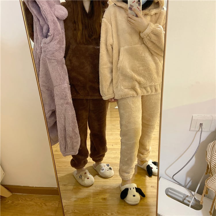 【送料無料】もこもこ ルームウェア 上下セット パンツ レディース パジャマ 長袖 くま フード付き 耳付き ガーリー ラブリー 茶色 パープル ベージュ 無地 紫 熊 クマ 秋 冬 暖かい ふわふわ やわらか かわいい おしゃれ 部屋着 寝巻き ホームウェア キュート 着ぐるみ風 モコモコ ワンサイズ フリーサイズ ゆったり 着る毛布 羽織 膝掛け 10代 20代 お家 リラックス 寝間着 ナイトウェア お泊まり インスタ映え 単色 双子 楽ちん セットアップ お揃い コーデ 韓国風 db1938