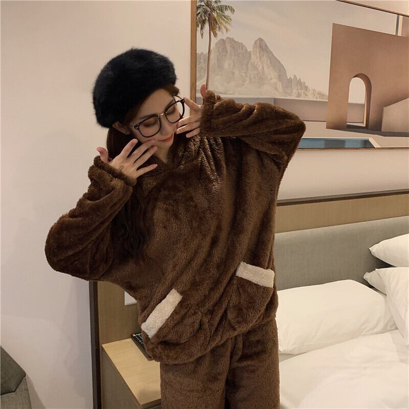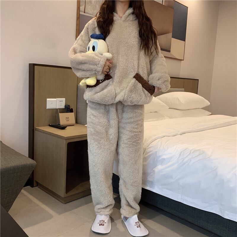 【送料無料】2色 もこもこ ルームウェア 上下セット パンツ レディース パジャマ 長袖 くま フード付き 耳付き ガーリー ラブリー 茶色 ベージュ 無地 バイカラー 大人っぽい カジュアル 熊 クマ 秋 冬 暖かい ふわふわ やわらか かわいい 部屋着 寝巻き ホームウェア キュート 着ぐるみ風 モコモコ S M L XL 大きいサイズ 着る毛布 羽織 10代 20代 お家 リラックス 寝間着 ナイトウェア お泊まり インスタ映え 単色 双子 楽ちん セットアップ お揃い コーデ 韓国風 db1946