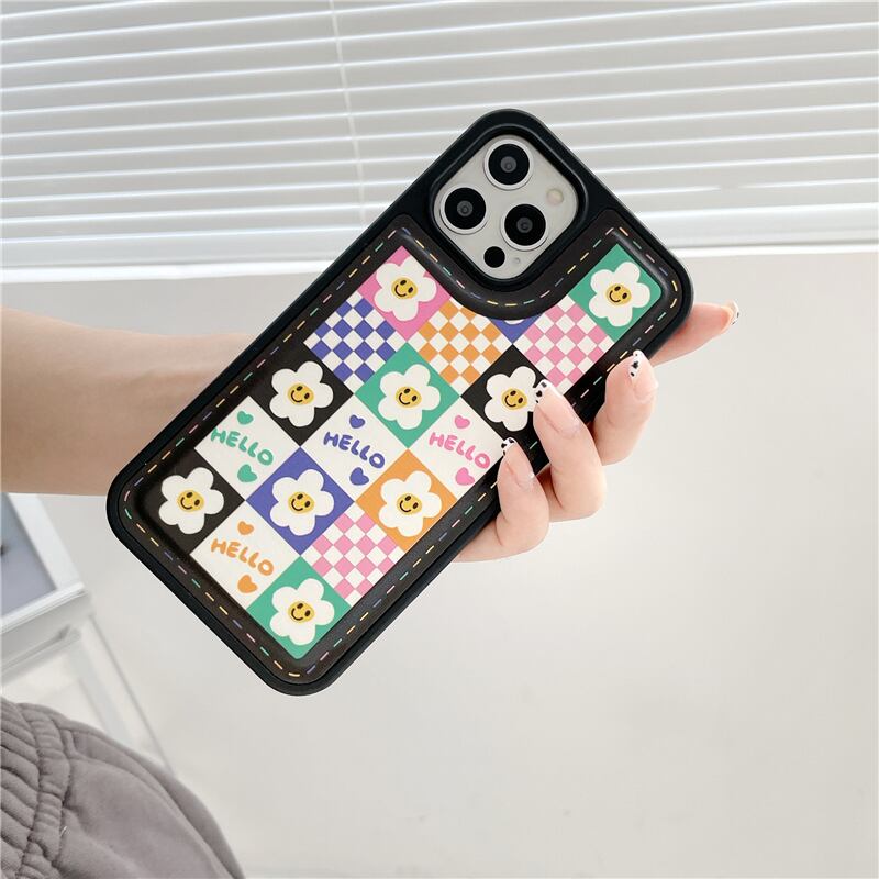 【送料無料】 2色 スマホケース スマホカバー 携帯ケース 携帯カバー iphone X iphoneXS iphoneXR iphoneXS MAX iphone 11 iphone11Pro iphone11Pro MAX iphone 12 iphone 12Pro iphone 12Pro MAX ケース 個性的 フラワー 花 ニコちゃん スマイリー ブロック チェック 青 黒 アイフォン 韓国系 ファッション アイテム 小物 10代 20代 ブルー ブラック かわいい おしゃれ db1948