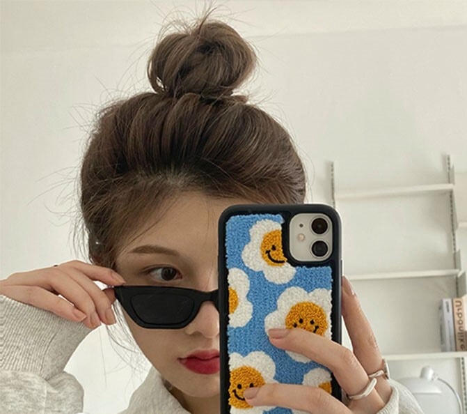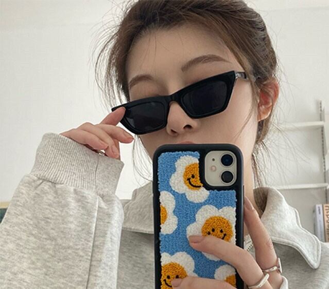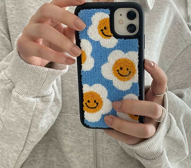 【送料無料】 スマホケース スマホカバー おしゃれ もこもこ スマイリー フラワー 刺繍 花 携帯ケース 携帯カバー 韓国系 iphone 7plus 8plus iphone X XS XR XS MAX iphone 11 11Pro MAX iphone 12 12Pro MAX iphone 13 ケース 青 ブルー レトロ かわいい にこちゃん 大人かわいい 個性的 アイフォン インスタ映え 高見え 可愛い 小物 アイテム ポップ db1982