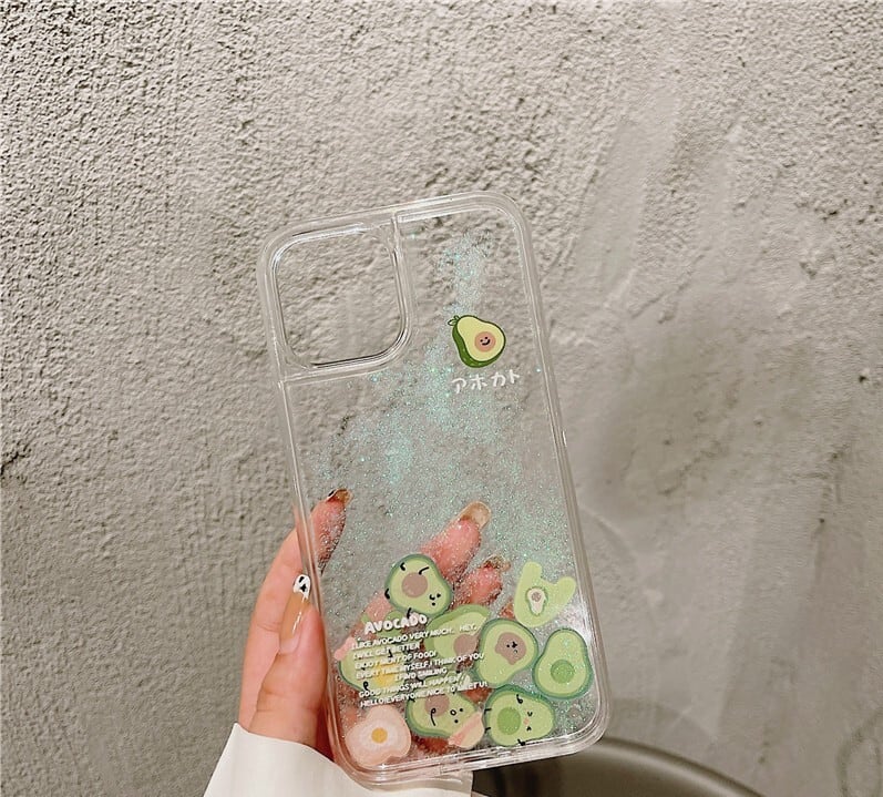 キラキラのグリッターとアボカドちゃん達がとっても可愛いiPhoneケース♪