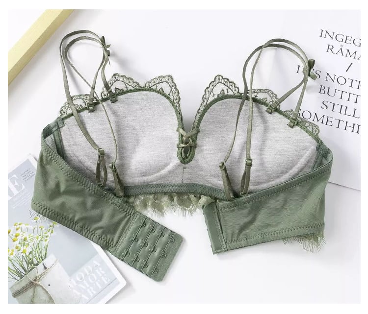 【送料無料】4色 インナー 下着 上下セット ブラジャー ノンワイヤー ショーツ グリーン 緑 オレンジ パープル 紫 ブラック 黒 レース リボン 3/4カップ ストラップ ノンワイヤー ワイヤレス ブラ 小胸 美胸 美バスト 盛れる 背中すっきり ブラ シンプル セクシー 大人可愛い おしゃれ リラックス オフ 普段使い デイリー 10代 20代 30代 40代 韓国系 db2047