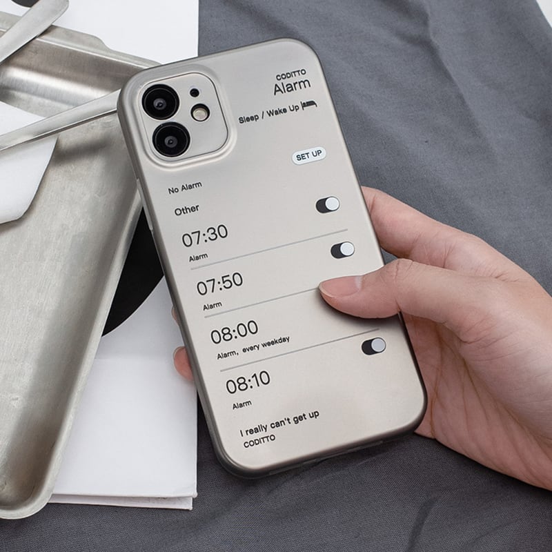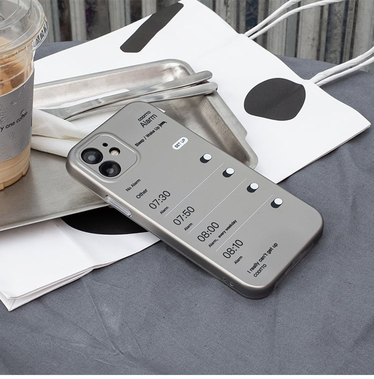 アラームの画面がそのまんまケースになっちゃったようなデザインのiPhoneケース♪