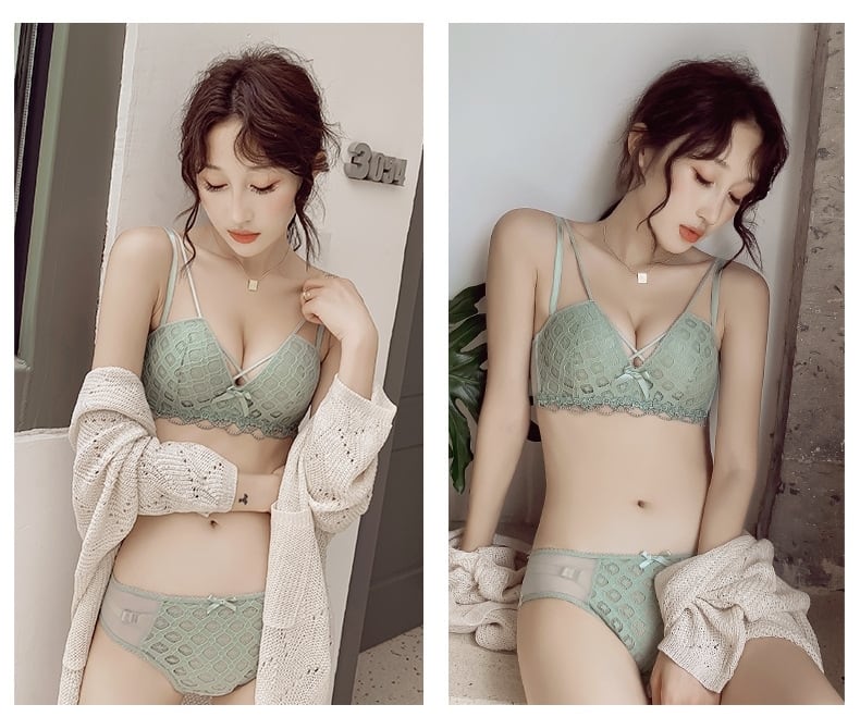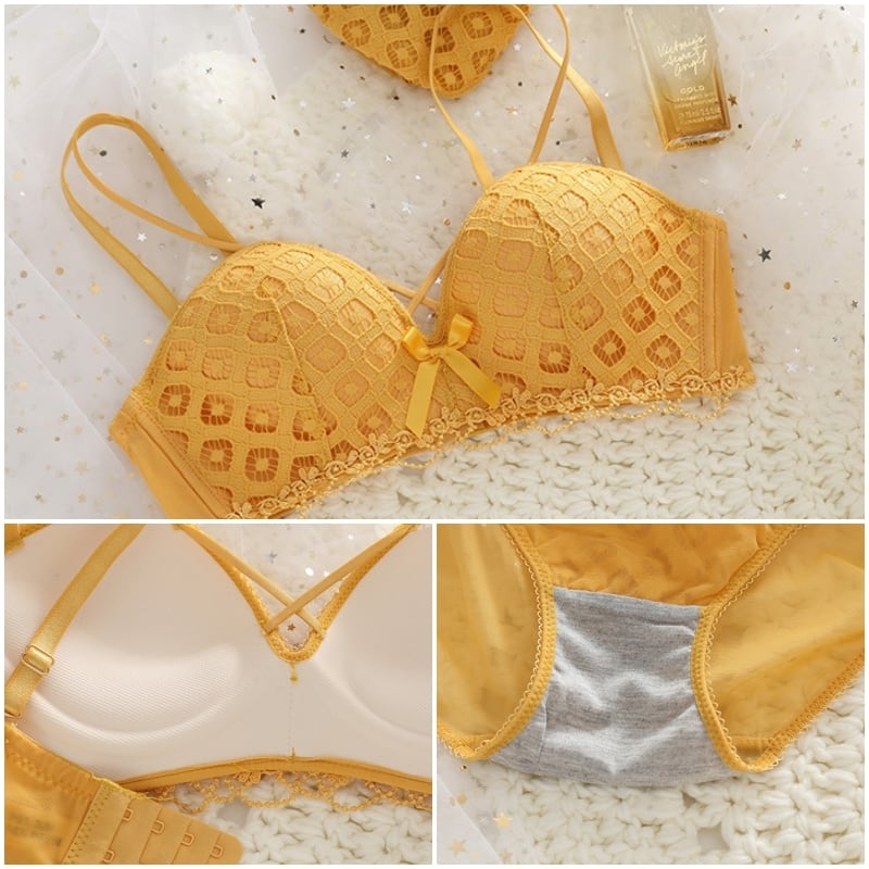 【送料無料】4色 インナー 下着 上下セット ブラジャー ノンワイヤー 盛れる ショーツ ブラック 黒 ライトグリーン 緑 オレンジ カーキ レース リボン 3/4カップ ストラップ ワイヤレス 美胸 美バスト 盛れる ブラ 背中すっきり シンプル おしゃれ 大人可愛い かわいい セクシー オフ リラックス 普段使い デイリー 10代 20代 30代 40代 韓国系 db2048