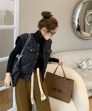 【送料無料】2色 アウター ベスト レディース 秋 冬 ブラック 黒 グリーン 緑 無地 ボタン シングルブレスト スタンドカラー キルティング ワンサイズ フリーサイズ カジュアル レトロ 大人可愛い クール ボーイッシュ こなれ感 大人女子 大人カジュアル 10代 20代 30代 40代 通勤 普段使い 休日 お出かけ 女子会 着回し 韓国 スタイル コーデ 韓国系 ファッション db2079