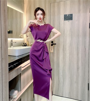 【送料無料】 3色 キャバ ドレス ミモレ ミモレ丈 ワンピ おしゃれ スレンダーライン フレンチスリーブ 大きいサイズ XL サイド キャバ キャバ嬢 上品 フレア シャーリング ドレス きれいめ かっこいい キャバクラ ドレス パーティードレス ワンピース 無地 いい女 細身 スリム ハイウエスト ウエストマーク スリット ワンピドレス ラウンド クラブ 衣装 大人 パーティー 可愛い ブラックドレス ナイトドレス 脚長 かわいい 10代 20代 30代 40代 韓国系 安い プチプラ no2048