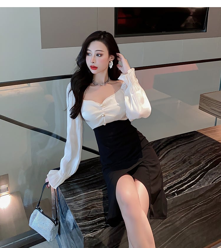 【送料無料】 キャバ ドレス ミモレ丈 ゴージャス 黒 セクシー スレンダーライン おしゃれ 長袖 サイド キャバ キャバ嬢 スクエアネック 上品 スリット オフショルダー ドレス ドッキング ウエスト切り替えきれいめ かっこいい キャバクラ ドレス パーティードレス ワンピース 無地 いい女 細身 スリム ハイウエスト パフスリーブ ワンピドレス ラウンド クラブ 衣装 大人 パーティー 可愛い ブラックドレス ナイトドレス 脚長 10代 20代 30代 韓国系 安い プチプラ no2053