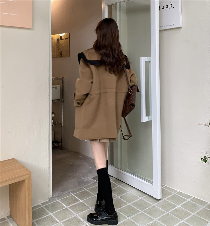 【送料無料】2色 アウター コート レディース 長袖 茶 モカブラウン 黒 ブラック 無地 セーラーカラー ミドル丈 膝上 大人カラー シンプル かわいい おしゃれ 大人女子 こなれ感 お洒落 個性的 存在感 10代 20代 30代 通勤 休日 お出かけ 学生 女子会 韓国系 お揃い 双子コーデ ファッション コーデ インスタ映え 人気 普段使い 大人可愛い ガーリー 主役級 ラブリー キュート デート db2095