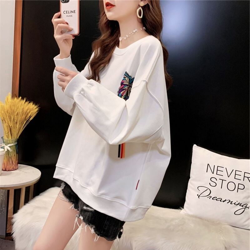 【送料無料】 トップス ディース 4カラー 長袖 トレーナー スウェット 蝶 バタフライ 刺繍 両面デザイン カジュアル かわいい 大人可愛い きれいめ 大人 シンプル おしゃれ お洒落 ガーリー レトロ 大人女子 個性的 主役級 存在感 女性用 OL 学生 デート お出かけ 女子会 休日 韓国 韓国系 オルチャン ファッション ホワイト 白 ピンク バイオレット イエロー 黄 ブラック 黒 カラバリ ビジュー 10代 20代 30代 M L XL 2XL コーデ スタイル プチプラ db2140