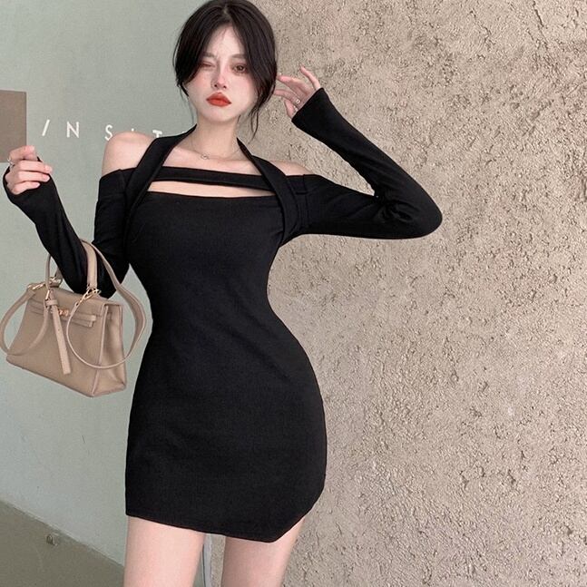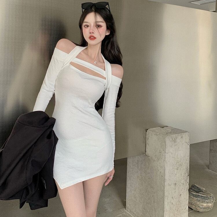 【送料無料】 ワンピ ワンピドレス キャバドレス ドレス レディース 長袖 オフショル ホルターネック ミニ丈 セクシー タイト キャバ 夜 肌見せ 小悪魔 甘辛 キュート ガーリー かわいい 大人可愛い きれいめ 大人 シンプル おしゃれ お洒落 レトロ 大人女子 個性的 主役級 存在感 女性用 OL 学生 デート お出かけ 女子会 パーティ 休日 韓国 韓国系 オルチャン ファッション ホワイト 白 ブラック 黒 ブルー 青 水色 10代 20代 ワンサイズ コーデ スタイル プチプラ db2147