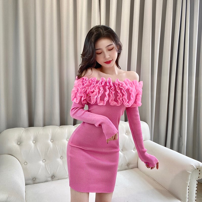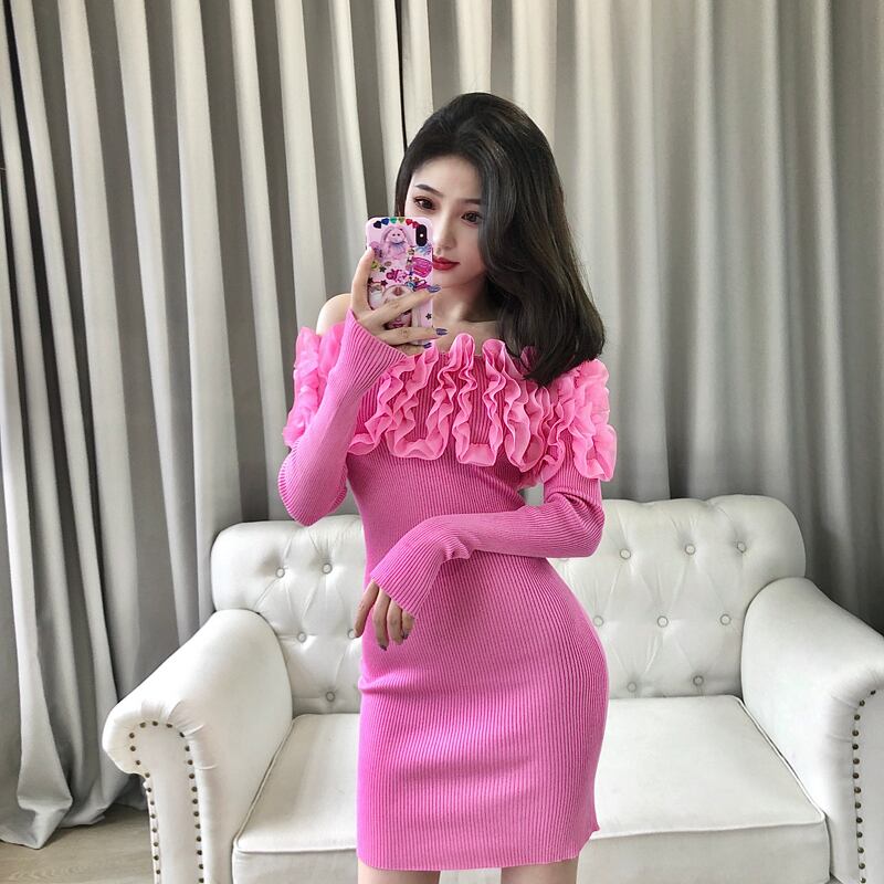 【送料無料】6色 キャバ ドレス ミニ 膝丈 セクシー ニット ワンピ レディース オフショル フリル 黒 白 ピンク 赤 紫 黄色 無地 長袖 おしゃれ キャバ嬢 細身 キュート 主役級 オフショルダー タイト ひざ丈 膝上 きれいめ キャバクラ パーティードレス いい女 細身 ミニスカート スリム ハイウエスト 長袖 ボディコン 華やか フリル レース とろみ感 ワンピドレス クラブ 衣装 大人 パーティー ナイトドレス 脚長 10代 20代 30代 韓国系 安い プチプラ 露出 色気 no2140