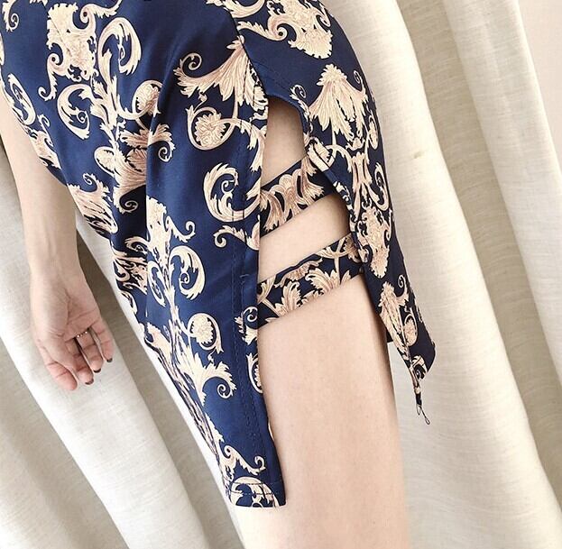 【送料無料】 キャバ ドレス チャイナドレス レディース ミニ 超ミニ セクシー ノースリーブ オリエンタル 柄 ネイビー 金色 個性的 かっこいい クール 大人 スタンドカラー ワンピ おしゃれ キャバ嬢 細身 主役級 タイト ミニ 谷間 胸元 ゴージャス きれいめ キャバクラ パーティードレス いい女 細身 ミニスカート スリム ハイウエスト ボディコン スレンダー 華やか スリット サイドスリット ワンピドレス クラブ 衣装 大人 パーティー ナイトドレス 10代 20代 韓国系 no2145