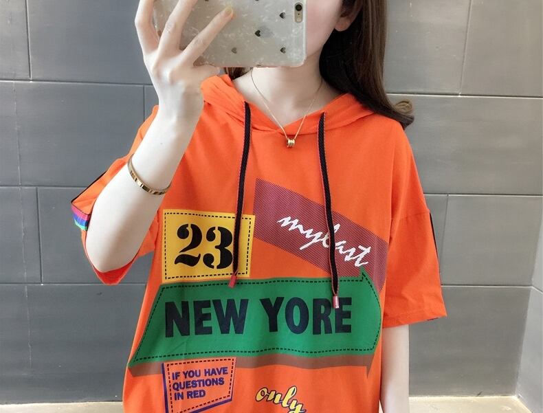 【送料無料】3色 トップス Tシャツ パーカー フード付き 半袖 夏 ホワイト 白 オレンジ ブラック 黒 大きいサイズ M L XL 2XL ラウンドネック プリント カジュアル シンプル ストリート系 おしゃれ 可愛い 個性的 ボーイッシュ ラフ 抜け感 こなれ感 ルーズ 10代 20代 30代 40代 ゆる ゆったり 休日 お出かけ デート お泊まり リラックス 普段使い 楽ちん 韓国 コーデ 韓国系 ファッション db2150