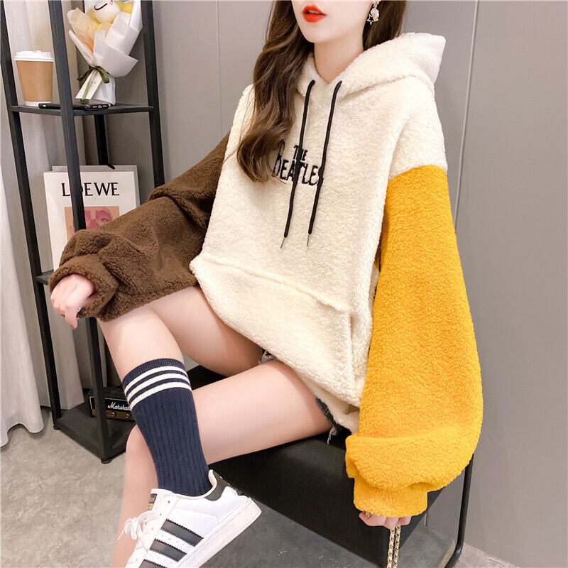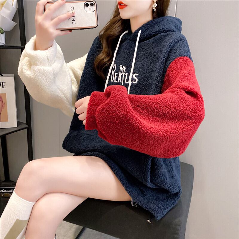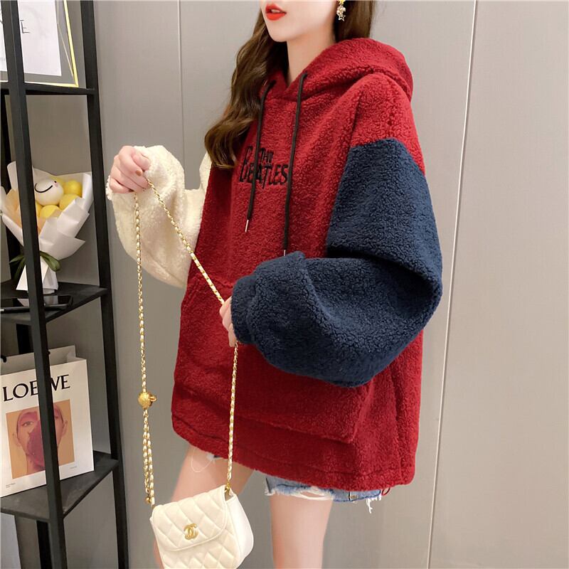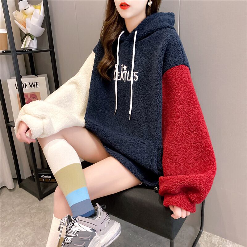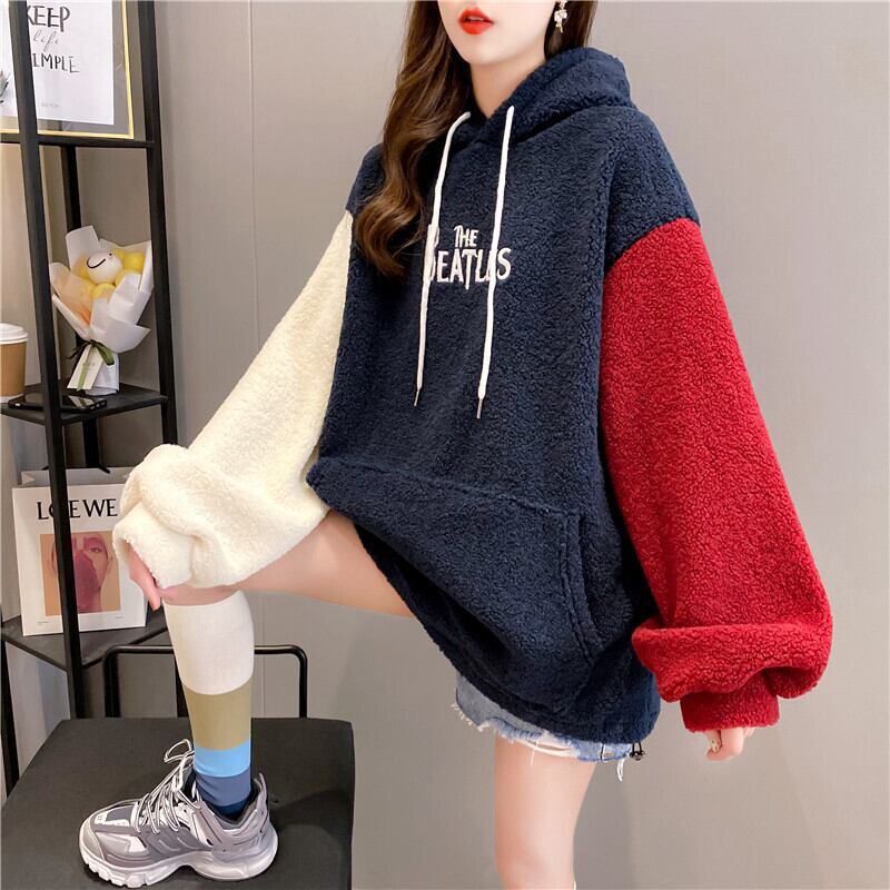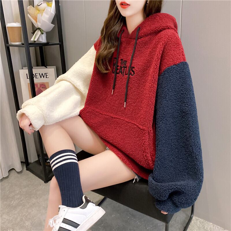 【送料無料】3色 トップス フーディー パーカー レディース フード付き 秋 冬 マルチカラー アプリコット 白 ワインレッド 赤 ダークブルー 青 カラーブロック M L XL 長袖 厚手 ルーズ カジュアル シンプル ストリート系 おしゃれ 可愛い 個性的 大人可愛い ラフ 抜け感 お洒落 こなれ感 キュート もこもこ 10代 20代 30代 40代 ゆる ゆったり 休日 お出かけ デート リラックス オフ 普段着 普段使い 楽ちん モテ コーデ 韓国系 ファッション 韓国 インスタ映え db2152