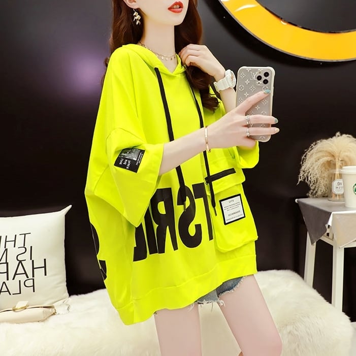 【送料無料】3色 トップス Tシャツ パーカー フード付き 半袖 夏 ブラック 黒 ホワイト 白 イエロー 黄色 大きいサイズ M L XL 2XL ミディアム丈 プリント ポケット カジュアル シンプル ストリート系 おしゃれ 可愛い かっこいい 個性的 ボーイッシュ ラフ 抜け感 こなれ感 ルーズ 10代 20代 30代 40代 ゆったり 休日 お出かけ お泊まり リラックス 普段使い 普段着 楽ちん 韓国 コーデ 韓国系 ファッション db2154