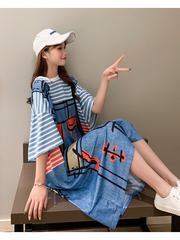 デニムのジャンバースカートを着ているような重ね着風Tシャツワンピ♪