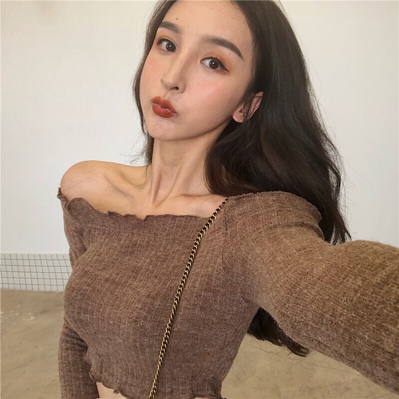 オフショルダーとショート丈がセクシーな長袖トップス。