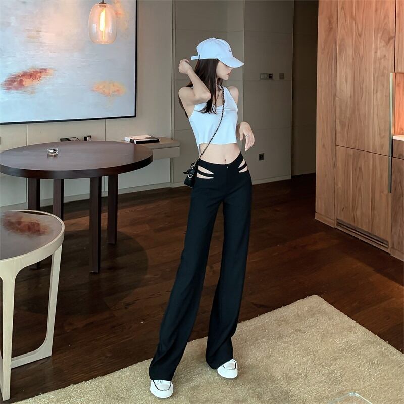 【送料無料】ボトムス パンツ カジュアルパンツ ズボン ワイドレッグ ハイウエスト ロング丈 スリム 秋 ブラック 黒 無地 薄手 カジュアル シンプル ストリート系 おしゃれ かわいい 大人可愛い 大人女子 大人カジュアル お洒落 こなれ感 大人 S M L 10代 20代 30代 休日 お出かけ デート 女子会 普段使い 普段着 モテ コーデ 脚長 美脚 スタイル 韓国 韓国系 ファッション db2175