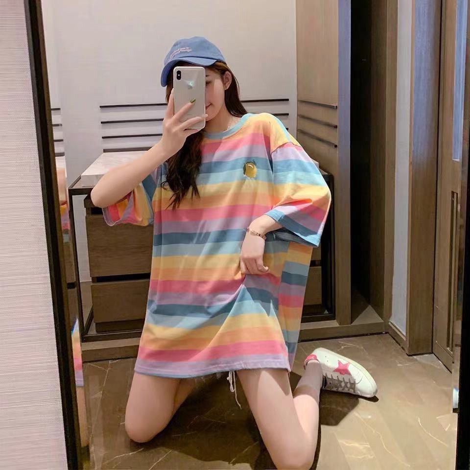 【送料無料】 2色 トップス ワンピース レディース Tシャツ Tシャツワンピ ラウンドネック 半袖 五分袖 ミニ丈 おしゃれ ボーダー ストライプ 華やか かわいい 個性的 ロンT ピンク 緑 グリーン レモン アボカド ワンポイント カジュアル 可愛い ゆったり こなれ感 M L XL 2XL 3XL コーデ 通勤 学生 10代 20代 30代 春 夏 トレンド インスタ映え 韓国 ファッション お揃い 普段着 部屋着 着回し お洒落 存在感 主役級 ガーリー ゆる とろみ感 かわいい db2134