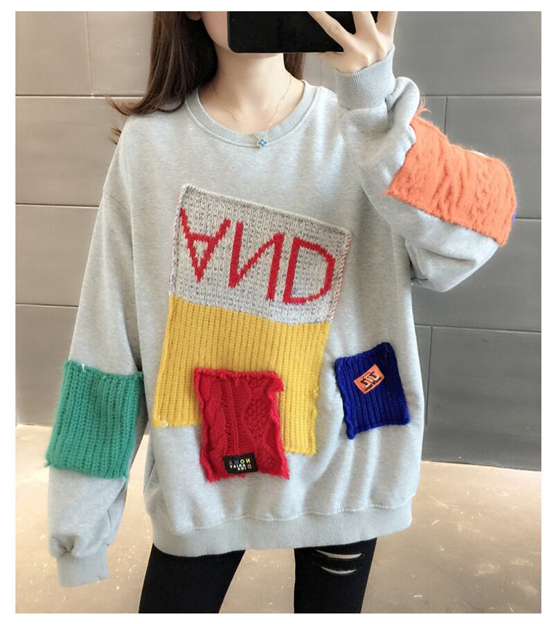 【送料無料】3色 トップス トレーナー セーター プルオーバー 長袖 秋 大きいサイズ XL 2XL ホワイト 白 ブラック 黒 グレー 灰色 大きいサイズ ラージサイズ ミディアム丈 ラウンドネック パッチ ルーズ カジュアル ストリート系 おしゃれ かわいい 個性的 ボーイッシュ 10代 20代 30代 40代 ゆったり M L XL 2XL 普段使い 休日 お出かけ デート 女子会 韓国 韓国系 ファッション スタイル コーデ db2153