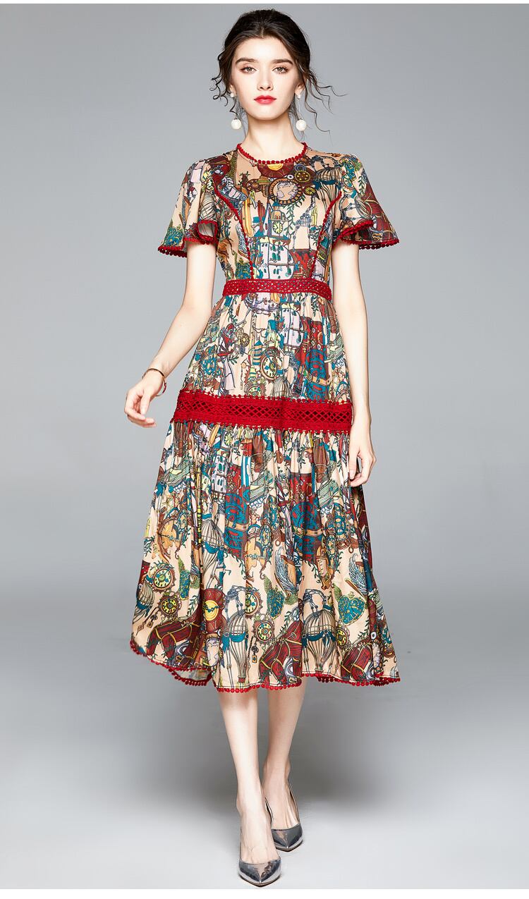 【送料無料】ワンピース ドレス ワンピドレス パーティドレス レトロ 個性的 柄 パーティ フレア 春 夏 半袖 膝丈 パフスリーブ 大きいサイズ 2XL 切り替えデザイン プリント ウエストマーク レディース フェミニン ガーリー ラブリー 結婚式 二次会 お呼ばれ お出かけ 演奏会 発表会 きれいめ クール カッコイイ 脚長 かわいい 可愛い 大人可愛い デート 女子会 モテ モテコーデ ファッション トレンド 人気 10代 20代 30代 40代 韓国系 海外 安い プチプラ no2166