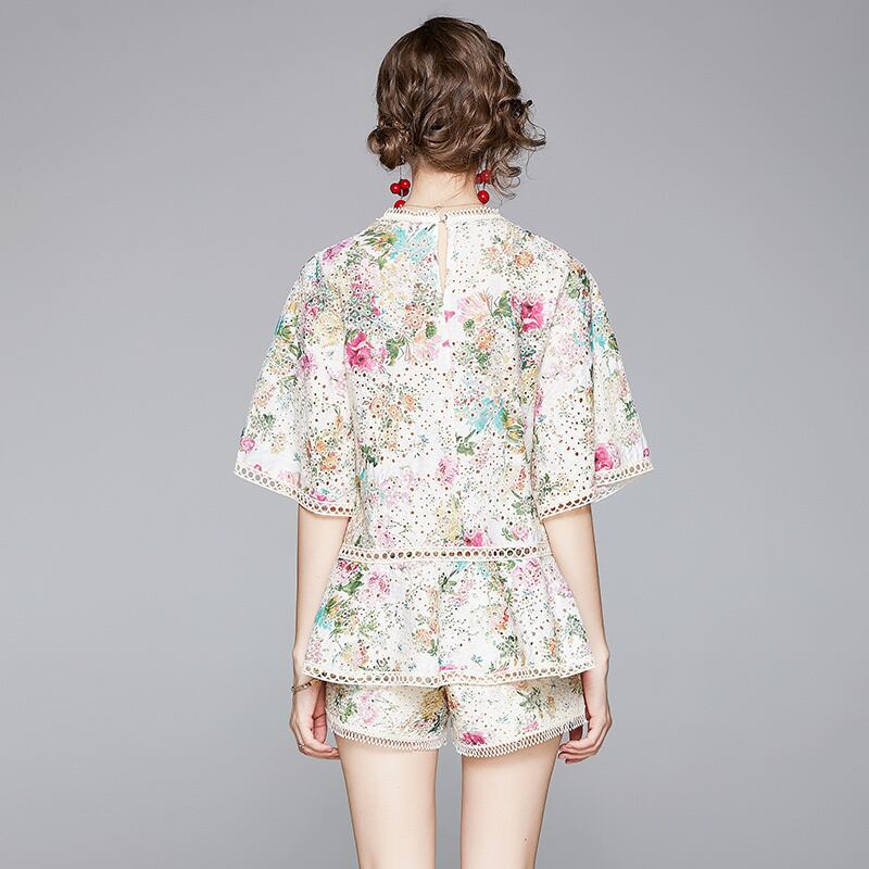 【送料無料】セットアップ レディース ショートパンツ 上下セット 2点セット 花柄 ブラウス 個性的 レース 透け感 透明感 フェアリー ショーパン ウエストマーク ミニ 春 夏 五分袖 大きいサイズ 2XL 白 ホワイト 花柄 フェミニン ガーリー ラブリー 清楚 結婚式 二次会 お呼ばれ お出かけ 演奏会 発表会 きれいめ 脚長 かわいい 可愛い 大人可愛い デート 女子会 モテ モテコーデ ファッション トレンド 人気 10代 20代 30代 40代 韓国系 海外 安い プチプラ no2169