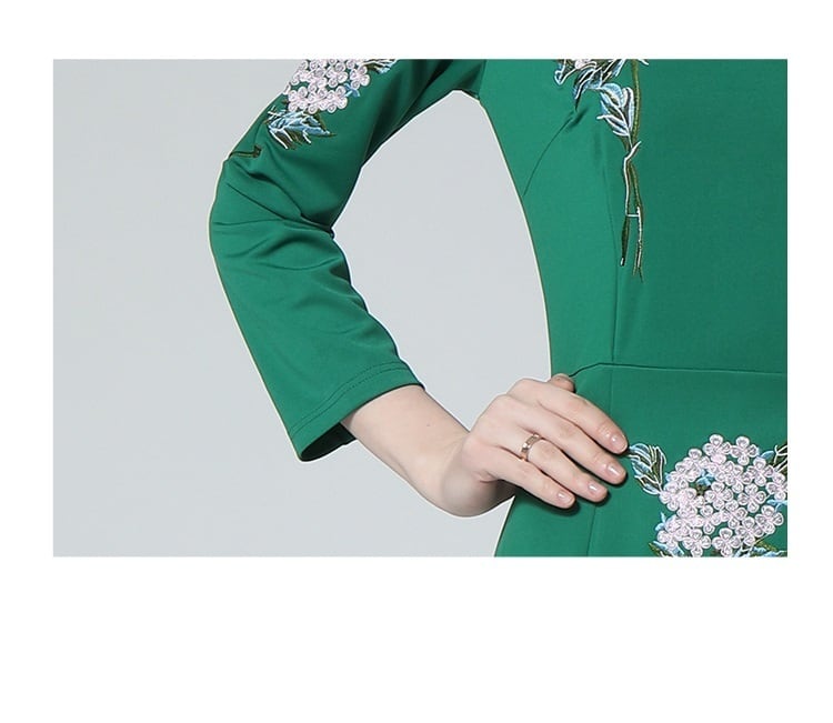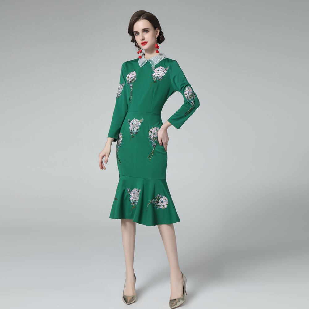 【送料無料】2色 ワンピース 膝丈 ドレス レトロ クラシック マーメイド パーティードレス 黒 緑 花柄 あじさい 襟付き 個性的 カジュアル フォーマル ワンピドレス 結婚式 二次会 お呼ばれ ミモレ丈 タイト 長袖 上品 春 夏 秋 冬 大きいサイズ 2XL レディース 紫陽花 きちんと 袖あり ブラック グリーン フェミニン お出かけ 演奏会 発表会 きれいめ 脚長 かわいい 大人可愛い 他にない 派手 海外 モデル ファッション トレンド 10代 20代 30代 40代 安い no2182