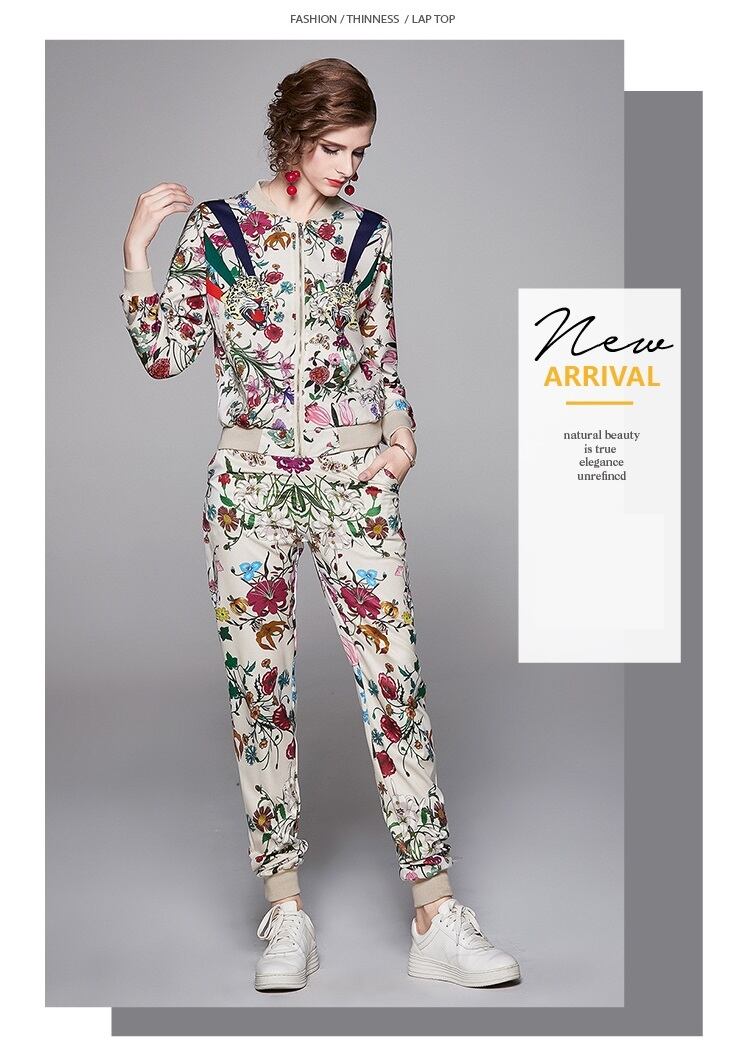 【送料無料】セットアップ レディース ジャケット パンツ 花柄 上下セット 個性的 おしゃれ かっこいい スウェット ボタニカル フラワー 長袖 春 夏 秋 冬 大きいサイズ 2XL 白 ホワイト 個性的 存在感 クール カッコイイ 大人 きれいめ 2点セット ズボン カジュアル レトロ 動きやすい スポーツ ランニング 脚長 かわいい 大人可愛い 海外 モデル ファッション トレンド 10代 20代 30代 40代 インスタ映え 他にない 華やか 派手 衣装 スポーツウェア ジャージ no2183
