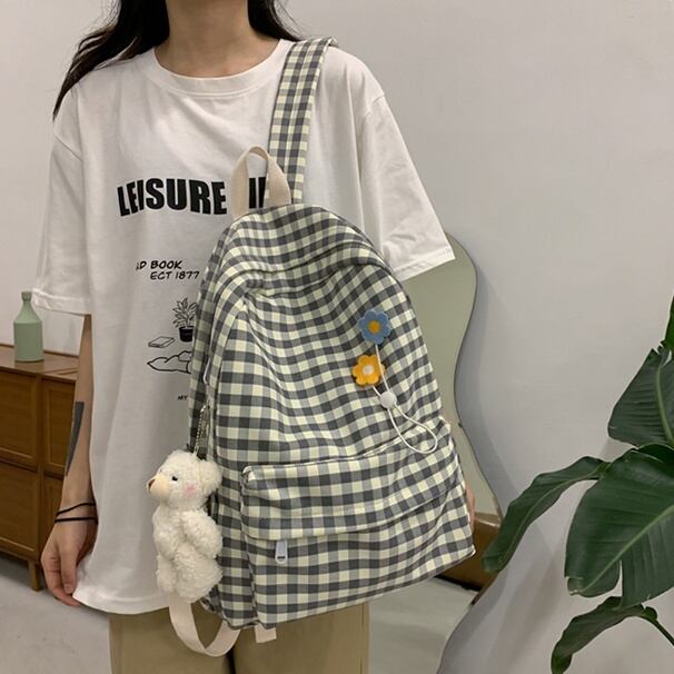 淡いカラーのチェック柄バッグパック♪