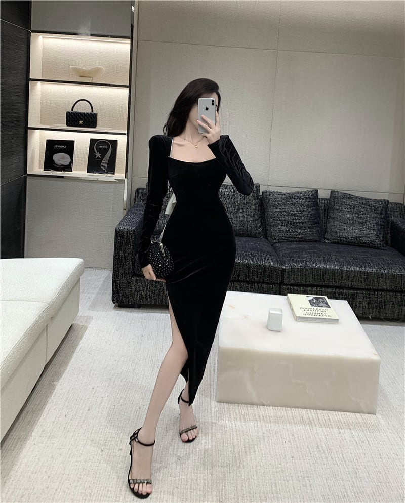 【送料無料】 ワンピース ロング ドレス 黒 キャバドレス タイト マーメイド バックリボン レディース 長袖 露出 背中見せ 肌見せ バックコンシャス リボン ブラック パーティードレス ミモレ丈 モノクロ S M L ひざ下 ゴージャス セクシー キャバ ギャル 夜 甘辛 キュート かわいい 大人可愛い きれいめ 大人 シンプル おしゃれ お洒落 大人女子 個性的 女性用 デート お出かけ 女子会 パーティ 韓国系 オルチャン ファッション 10代 20代 春 秋 冬 コーデ プチプラ db2224