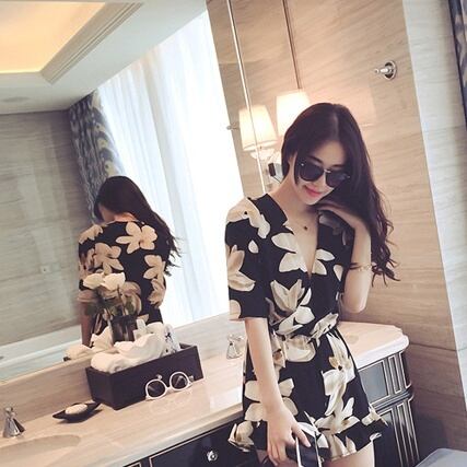 【送料無料】パンツドレス ミニ フレア 花柄 黒 ワンピ キャバドレス レディース 半袖 大人可愛い レトロ オールインワン ショートパンツ リゾート 春 夏 5分袖 パフスリーブ Vネック ブラック 黒 S M L 花柄 花 フラワー ボタニカル セレブ ミニ丈 セクシー キャバ 夜 上品 甘辛 キュート ガーリー かわいい 大人可愛い きれいめ 大人 シンプル 女性用 学生 デート お出かけ 女子会 パーティ 休日 韓国系 オルチャン ファッション 10代 20代 スタイル プチプラ db2245