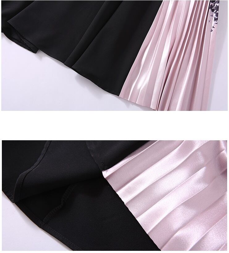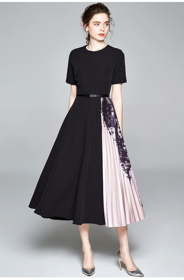 【送料無料】ワンピース 膝丈 ミモレ丈 ドレス 黒 プリーツ バイカラー シンプル 個性的 大人 きれいめ パーティードレス フレア Aライン ウエストマーク 華やか 半袖 春 夏 大きいサイズ 2XL 3XL レディース 黒 ブラック コーデ 部分プリーツ 切り替え デザイン セレブ 上品 存在感 清楚 エレガント フェミニン 普段使い お出かけ 演奏会 発表会 結婚式 二次会 脚長 かわいい デート 女子会 デキる女 ファッション 10代 20代 30代 40代 海外 安い プチプラ no2196