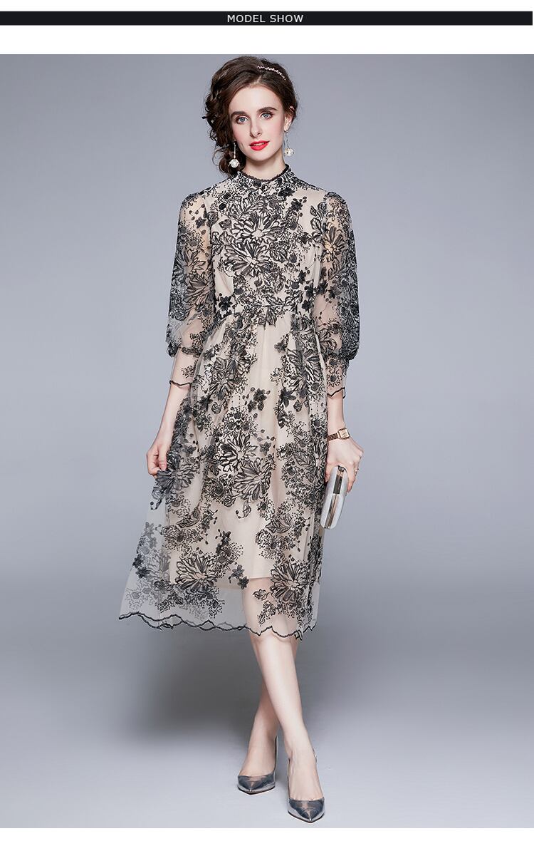 【送料無料】パーティードレス ミモレ丈 ひざ丈 ドレス モノトーン 黒 総レース シースルー 個性的 袖あり カジュアル ワンピドレス フォーマル 体型カバー ワンピース 透け感 フレア 五分袖 七分袖 春 夏 秋 ボリューム袖 大きいサイズ 2XL レディース ブラック ホワイト 黒 白 花柄 上品 主役級 存在感 清楚 エレガント フェミニン きれいめ 結婚式 二次会 お呼ばれ パーティ 演奏会 発表会 女子会 デート かっこいい ママ 海外 ファッション 10代 20代 30代 40代 no2200
