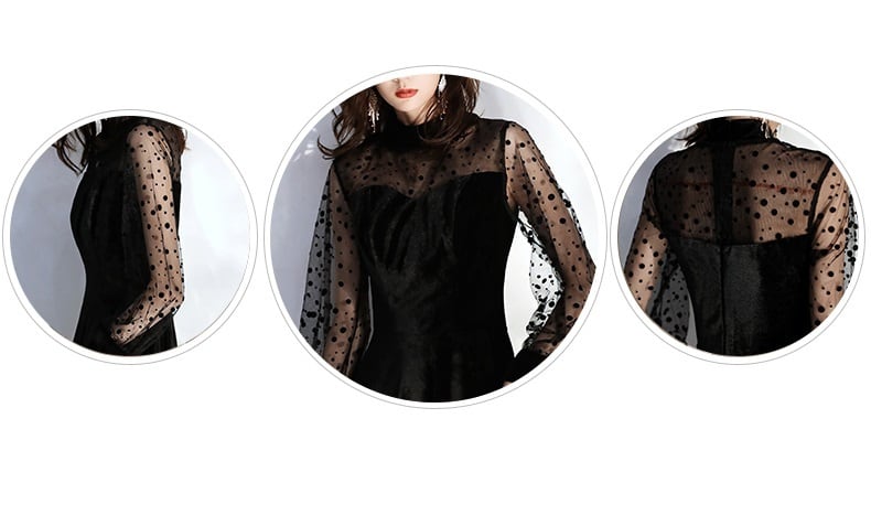 【送料無料】パーティードレス ロング ドレス 黒 大人可愛い 個性的 ドット柄 レディース 結婚式 二次会 お呼ばれ 演奏会 発表会 フォーマル ドレス ワンピース 華やか 長袖 シースルー 春 夏 秋 冬 小さいサイズ XS 大きいサイズ 2XL 3XL ブラック 無地 きれいめ セレブ 上品 存在感 エレガント フェミニン ブラックドレス ロングドレス 舞台 衣装 海外 ファッション トレンド 人気 10代 20代 30代 40代 ママ おしゃれ 主役級 dress no2209
