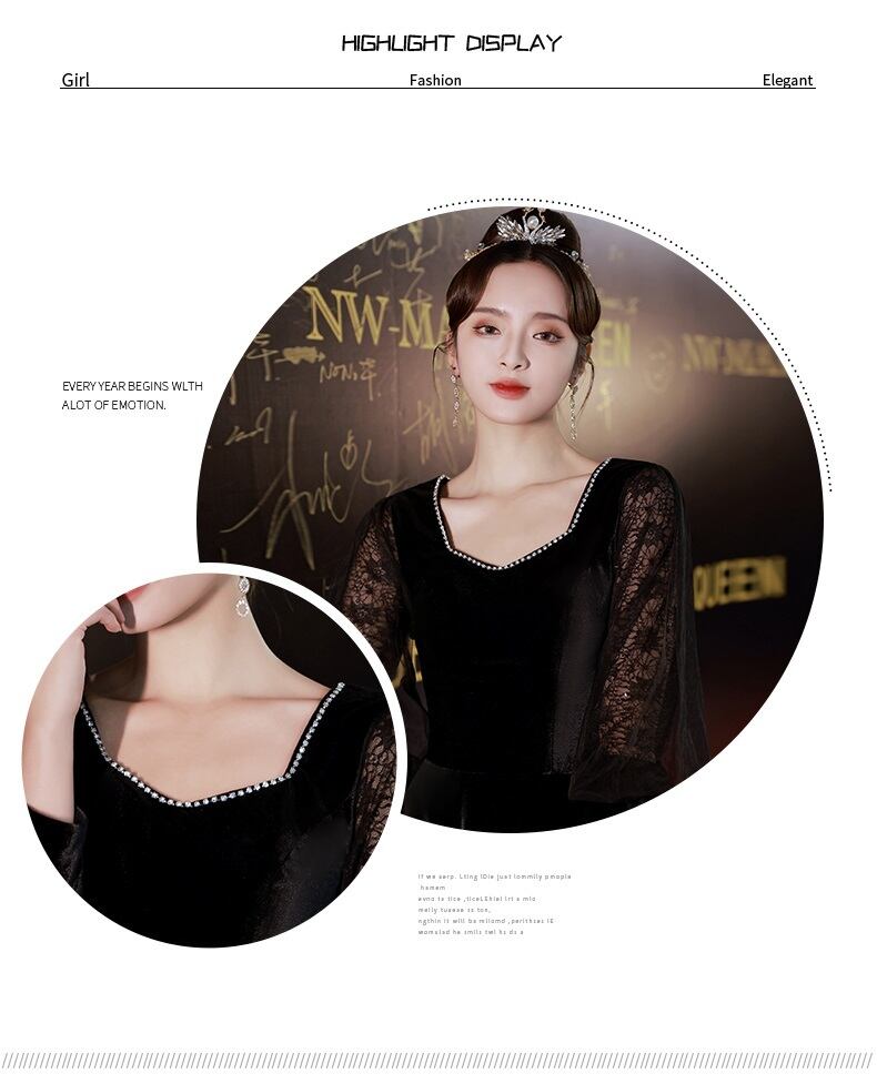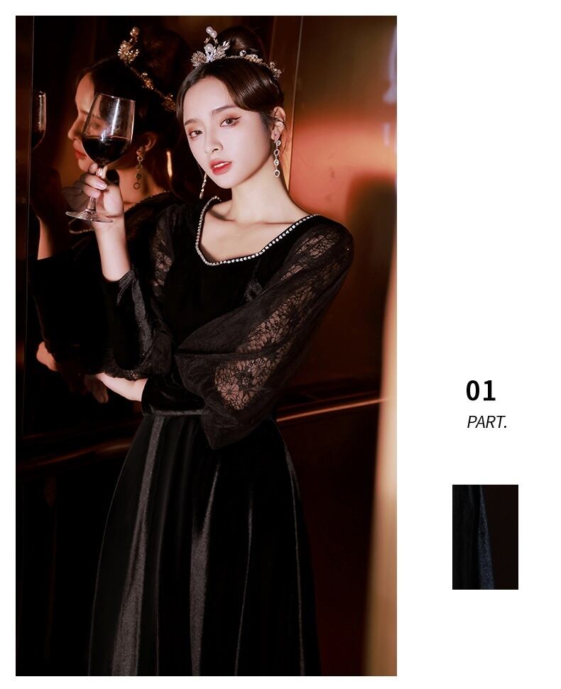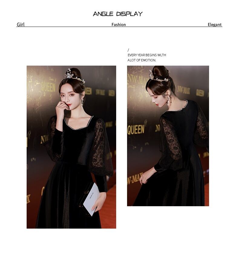 【送料無料】パーティードレス レディース 黒 ミモレ丈 結婚式 二次会 お呼ばれ 演奏会 発表会 フォーマル ドレス ワンピース 袖あり レース 個性的 お洒落 大人可愛い きれいめ 華やか 春 秋 冬 小さいサイズ XS 大きいサイズ 2XL 3XL きれいめ セレブ 上品 存在感 清楚 エレガント フェミニン ブラックドレス フレア Aライン ビジュー キラキラ スクエアネック バックシャン 舞台 衣装 海外 dress ファッション トレンド 人気 10代 20代 30代 40代 no2210