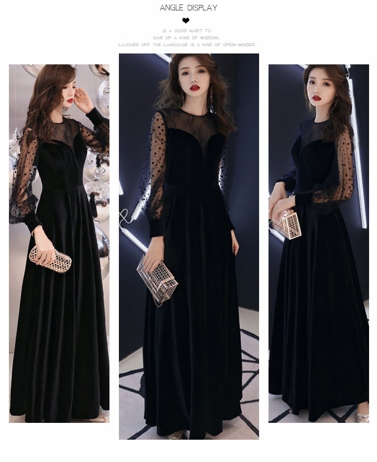 【送料無料】パーティードレス ロング ドレス 黒 Aライン レディース 結婚式 二次会 お呼ばれ 演奏会 発表会 フォーマル ドレス ワンピース 個性的 ドット柄 長袖 透け感 お洒落 きれいめ 大人可愛い 華やか 袖あり 衣装 春 夏 秋 冬 小さいサイズ XS 大きいサイズ 2XL 3XL セレブ 上品 存在感 エレガント フェミニン ブラックドレス 海外 韓国 ファッション トレンド 人気 10代 20代 30代 dress ラブリー 謝恩会 成人式 舞台 トレンド かっこいい no2213