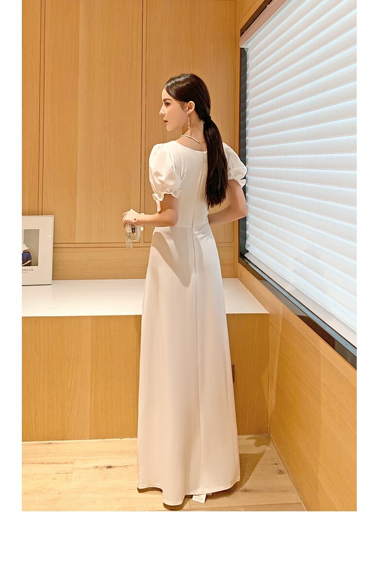 【送料無料】2色 パーティードレス ロング ドレス 白 黒 無地 パフスリーブ スリット 個性的 タイト Iライン レディース 結婚式 二次会 お呼ばれ 演奏会 発表会 フォーマル ドレス ワンピース 華やか 袖あり 半袖 大胆 スクシー 春 夏 秋 冬 小さいサイズ XS 大きいサイズ 2XL 3XL ブラック ホワイト きれいめ セレブ 上品 存在感 エレガント フェミニン ウェディングドレス カジュアル 花嫁 挙式 イブニングドレス 韓国 ファッション 10代 20代 no2217