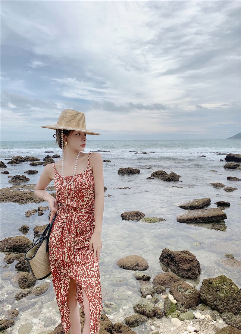 【送料無料】セットアップ 上下セット スカート ミモレ丈 キャミソール スリット 大胆 露出 肌みせ 春 夏 リゾート ワンピ ドレス コーデ 2点セット パーティードレス 女の子 海 プール レディース レトロ レッド 赤 プリント 個性的 スリット かっこいい スリム きれいめ 華やか 大きいサイズ L 可愛い 脚長 オシャレ デート 存在感 こなれ感 インスタ映え 韓国ファッション 海外トレンド 大人気 高見え トレンド 人気 10代 20代 30代 40代 プチプラ db2314