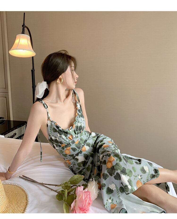 【送料無料】ドレス ワンピース 春 夏 リゾート ワンピ パーティードレス 女の子 花柄 フルーツ柄 レトロ ワンピドレス フレア ミモレ丈 ノースリーブ Vネック 海 プール 植物 レディース グリーン 緑 きれいめ 華やか 大きいサイズ L XL オシャレ デート お出かけ 存在感 こなれ感 女子会 パーティ ボタニカル マーメイド ロング 主役級 インスタグラマー インスタ映え 韓国ファッション 海外トレンド 大人気 高見え トレンド 人気 10代 20代 30代 40代 プチプラ db2316