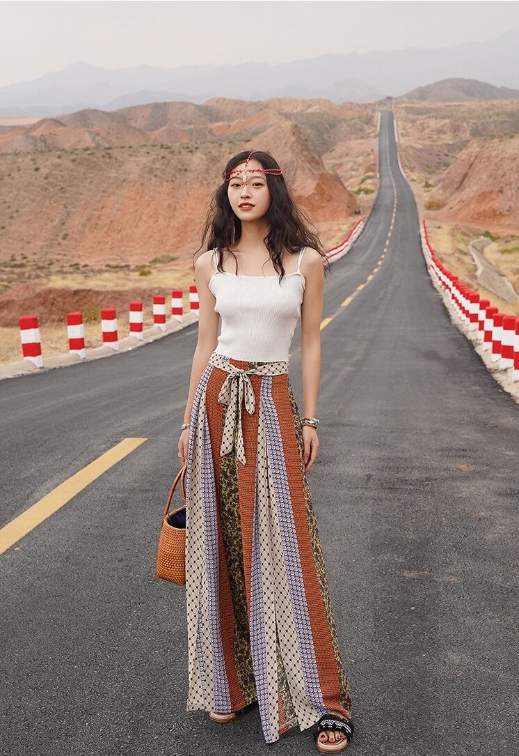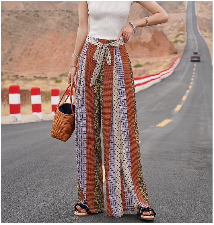 【送料無料】パンツ 春 夏 レトロ バイカラー エスニック ズボン ボトムス レディース 女の子 リゾート ワイドパンツ 個性的 ドット プリント 柄 ブラウン ロング ゆったり ラフ ビーチ 華やか きれいめ ウエストマーク リボン カッコイイ アジアン ボヘミアン 大人女子 フェミニン 大きいサイズ L XL 可愛い 脚長 オシャレ デート 存在感 こなれ感 女子会 普段 デイリー 休日 インスタ映え 韓国ファッション インスタ映え 海外トレンド 10代 20代 30代 40代 db2322