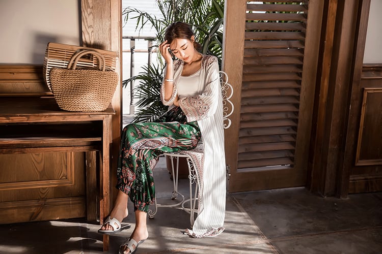 【送料無料】ロング カーディガン エスニック ボヘミアン レトロ 春 夏 アウター 羽織 ホワイト 白 ロング丈 レディース ゆったり ラフ 海 プール ビーチ リゾート 女の子 日焼け止め 冷え対策 かっこいい 大人 個性的 薄手 きれいめ 長袖 セレブ 柄物 ワンサイズ カワイイ 脚長 スタイルアップ おしゃれ デート お出かけ 存在感 こなれ感 抜け感 ゆったり 楽ちん 上着 デイリー インスタ映え 韓国ファッション 海外トレンド 10代 20代 30代 40代 プdb2323