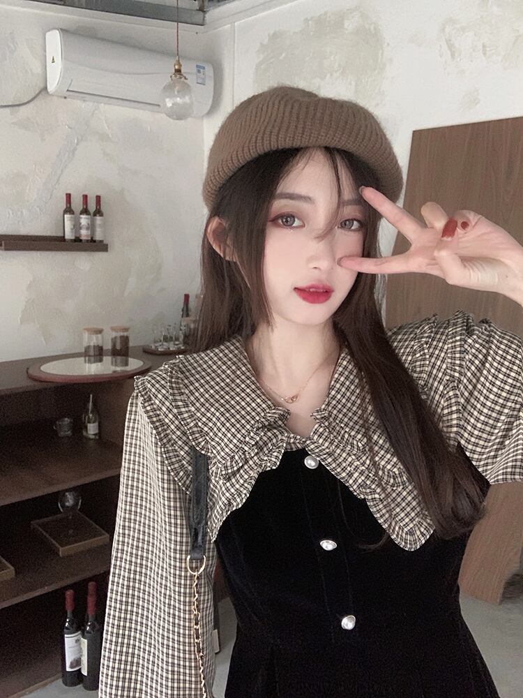 【送料無料】 ワンピース レディース ミモレ丈 チェック柄 黒 シャツ ワンピ 重ね着風 フェイク ツーピース ロング丈 Aライン 長袖 大人可愛い かっこいい 襟付き 黒 ブラック 無地 チェック フリル ボタン セレブ感 きれいめ 大人 レトロ 大人可愛い ラブリー L XL 2XL 3XL 4XL おしゃれ カジュアル こなれ感 インスタ映え 春 秋 冬 10代 20代 30代 休日 お揃い 双子 韓国 スタイル ファッション コーデ クール トレンド 主役級 存在感 スタイル db2272