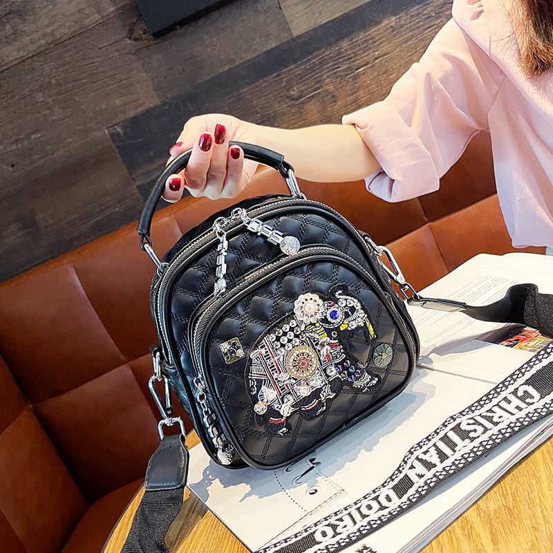 【送料無料】2色 リュック リュックサック ショルダーバッグ ハンドバッグ 象 ゾウ 個性的 ビジュー キラキラ ミニバッグ エレファント 多機能 小さめ 四角 収納 手持ち キルティング PU レザー 革 手提げ 斜めがけ バック カバン レディース ジッパー 学生 ブラック ホワイト 黒 白 個性的 春 夏 秋 冬 鞄 買い物 普段使い キュート カジュアル お洒落 可愛い 女子会 デート お出かけ 韓国ファッション 海外 高見え 小さめ コンパクト ミニバック 10代 20代 30代 db2338