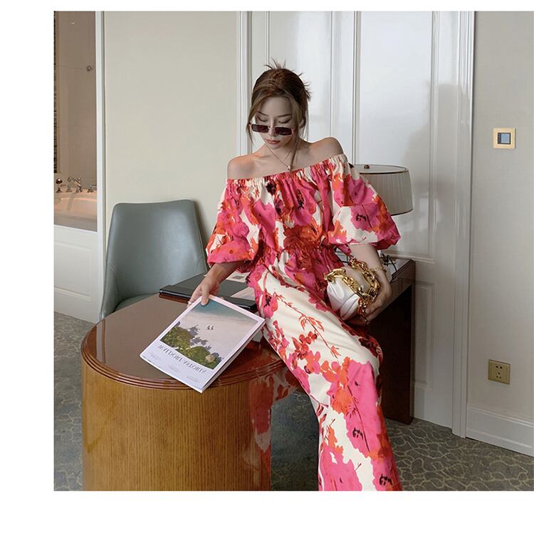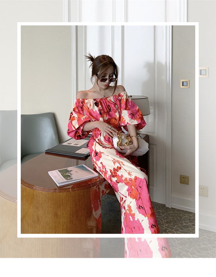 【送料無料】 ワンピース ドレス ミモレ丈 花柄 ピンク カジュアル パーティードレス レディース オフショルダー チューブトップ ミドル丈 半袖 セクシー セレブ 上品 カッコイイ フェミニン 華やか きれいめ かわいい おしゃれ こなれ感 リゾート ワンピ 袖あり S M L XL 脚長 インスタ映え 春 夏 10代 20代 30代 結婚式 二次会 お呼ばれ フォーマル ドレス 韓国 ファッション コーデ 人気 クール 海 プール クラブ いい女 トレンド 個性的 存在感 主役級 db2279