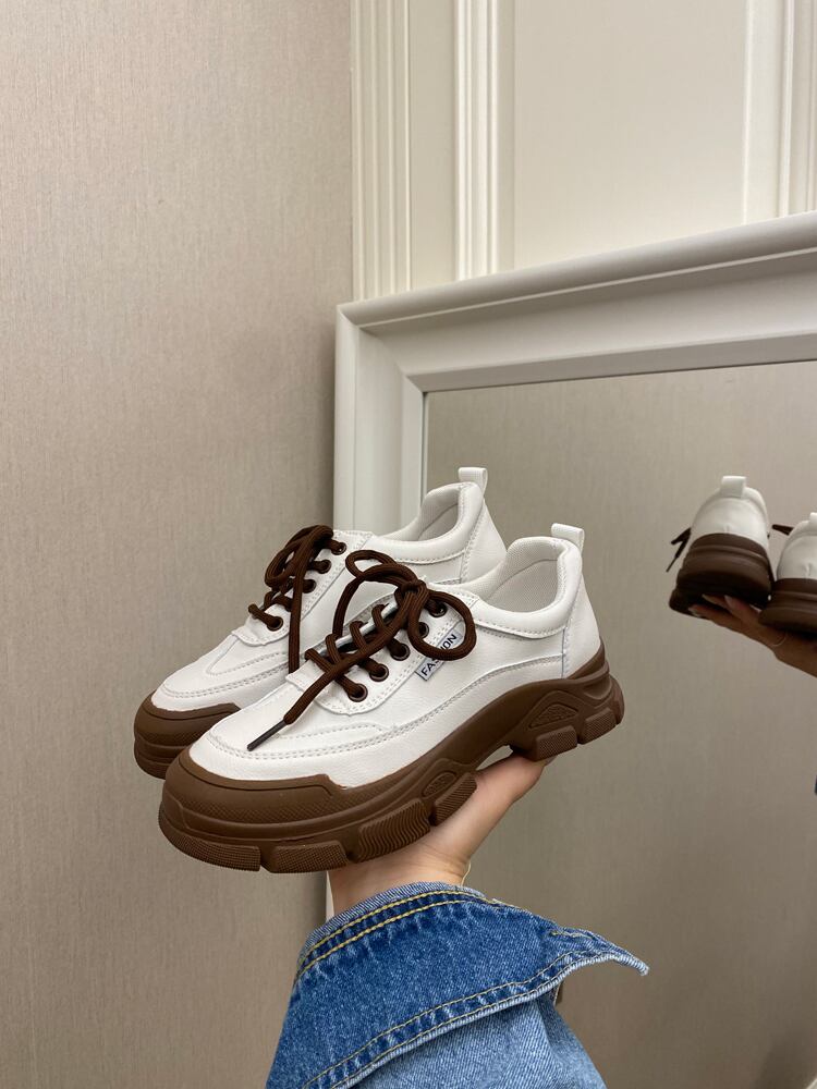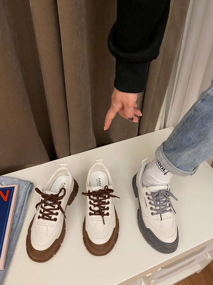 【送料無料】 スニーカー ローカット 厚底 シューズ レディース レースアップ 靴 茶 グレー ブラウン ラバーソール かわいい かっこいい バイカラー クツ くつ フラット 歩きやすい おしゃれ デイリー 大人可愛い カジュアル 通勤 通学 学生 女子会 こなれ感 10代 20代 30代 春 夏 秋 冬 トレンド かわいい 脚長 美脚 韓国 原宿 ファッション コーデ 主役級 デート 普段使い お揃い 双子 抜け感 存在感 マニッシュ レトロ 人気 インスタ映え 萌え 存在感 個性的 db2286