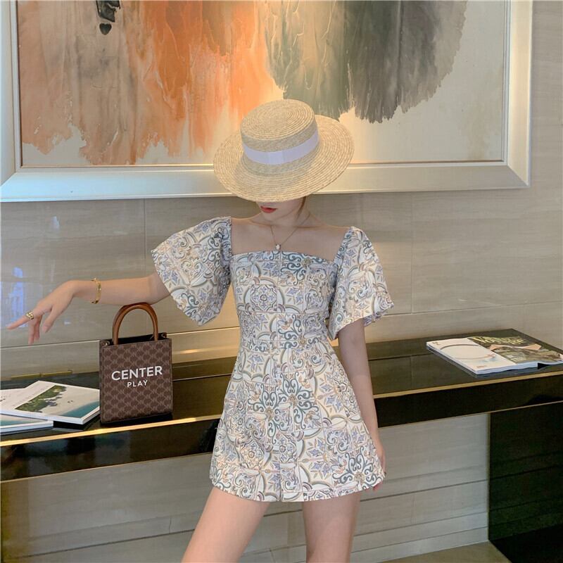 【送料無料】オールインワン パンツ ミニ オフショル 柄 ゆったり ラフ ビーチ 海 プール レトロ 春 夏 パンツドレス サロペット 半袖 ショートパンツ ボトムス レディース 大きいサイズ XL ホワイト 白 カッコイイ セクシー 可愛い キュート ウエストマーク 美脚 脚長 オシャレ デート お出かけ 存在感 こなれ感 女子会 普段使い デイリー使い 休日 主役級 セクシー 肩出し インスタ映え 韓国ファッション 上品 海外 高見え トレンド 10代 20代 30代 40代 プチプラ db2403