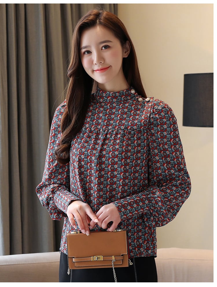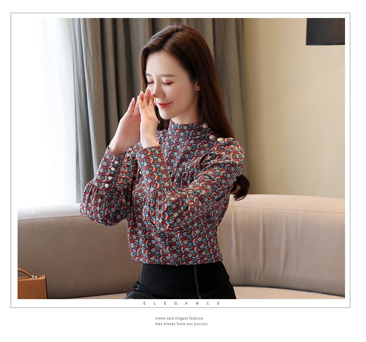 【送料無料】ブラウス 柄 シャツ レディース シフォン レトロ ガーリー 小花柄 きれいめカッコイイ 柄 キュート 大人可愛い 個性的 長袖 トップス フォーマル コーデ スタンドカラー パールボタン 上品 きちんと ママ 大きいサイズ XL 2XL 春 秋 セレブ カワイイ おしゃれ デート お出かけ 存在感 こなれ感 抜け感 女子会 主役級 インスタ映え 韓国ファッション 海外トレンド オルチャン スタイル 大人っぽい お嬢様 10代 20代 30代 40代 プチプラ db2429